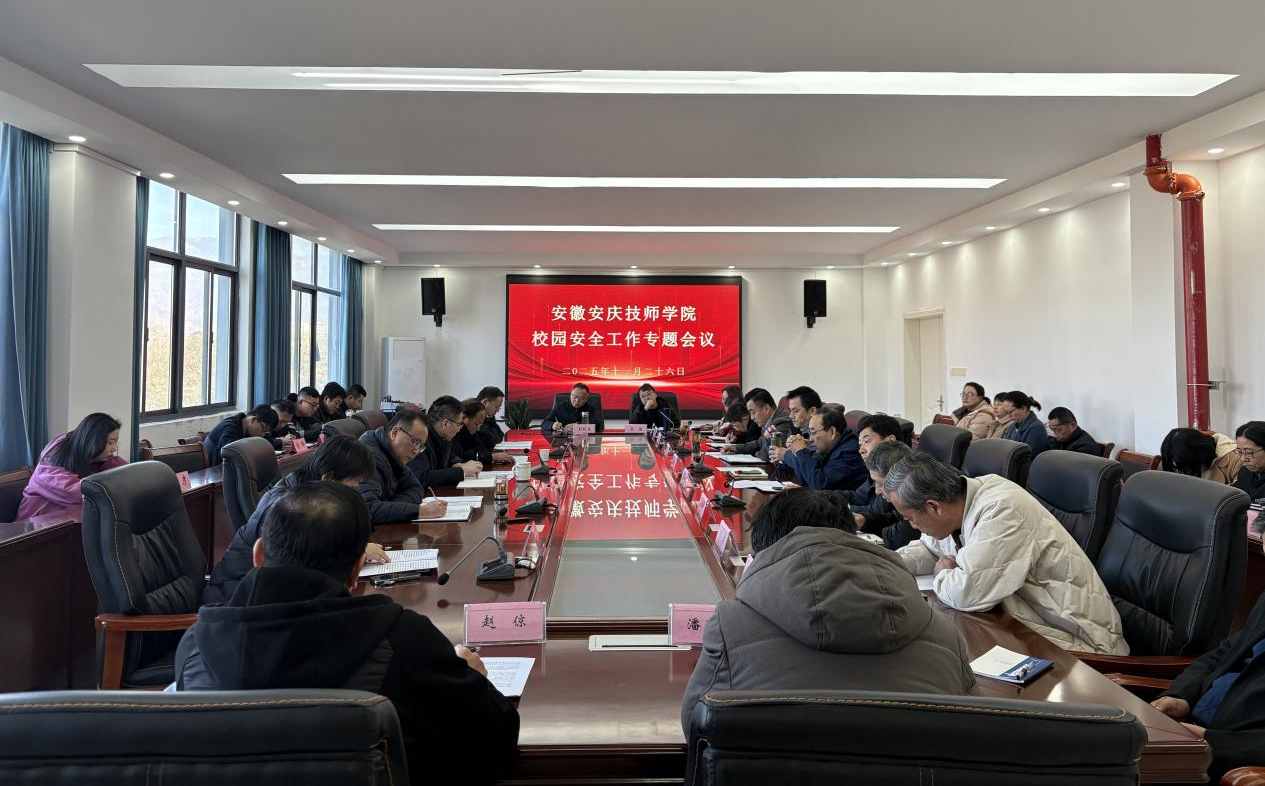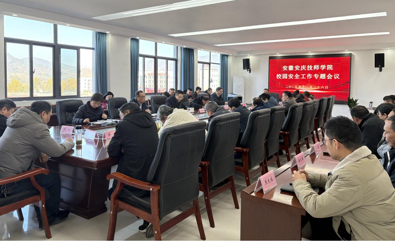 11 月 26 日下午,学院在 2 号实训楼四楼会议室召开校园安全工作专题会议。学院党委副书记、院长徐英武主持会议并讲话,党委委员、副院长徐波,党委委员、纪委书记朱清,党委委员严丰俊、张蕾及各部门中层正、副职干部参加会议。