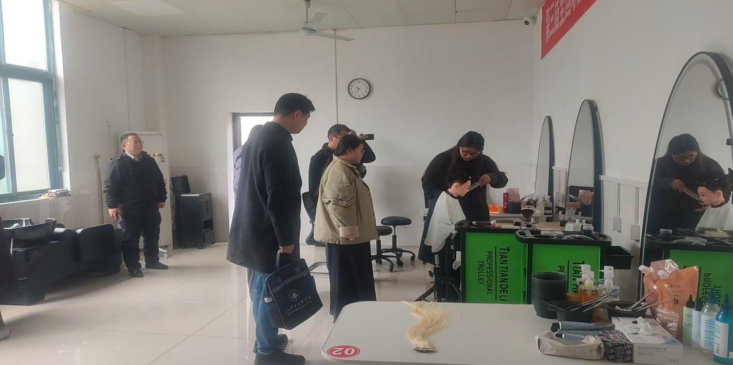 座谈会结束后,在党委委员严丰俊的陪同下,安徽建工技师学院一行实地参观了学院美容美发实训室,详细察看了实训设施配置、日常实训开展情况,近距离观摩了学生实操训练,对实训室的标准化建设、规范化管理以及学生扎实的专业技能给予高度评价。