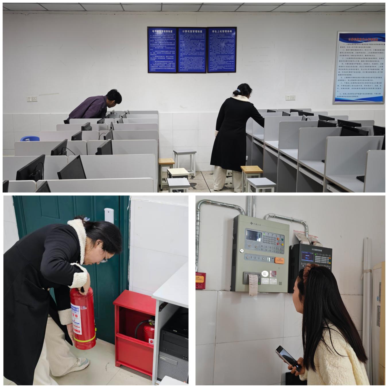 在开展专项安全检查及资产核查工作中,全面覆盖中心机房、监控机房、学生机房等核心区域,严格对照安全管理规范,逐一排查消防安全、环境卫生等重点领域潜在的隐患,做到不留死角、不漏盲区。针对检查中发现的问题,现场梳理形成问题清单,明确整改责任与时限,形成闭环管理,切实筑牢安全防线。