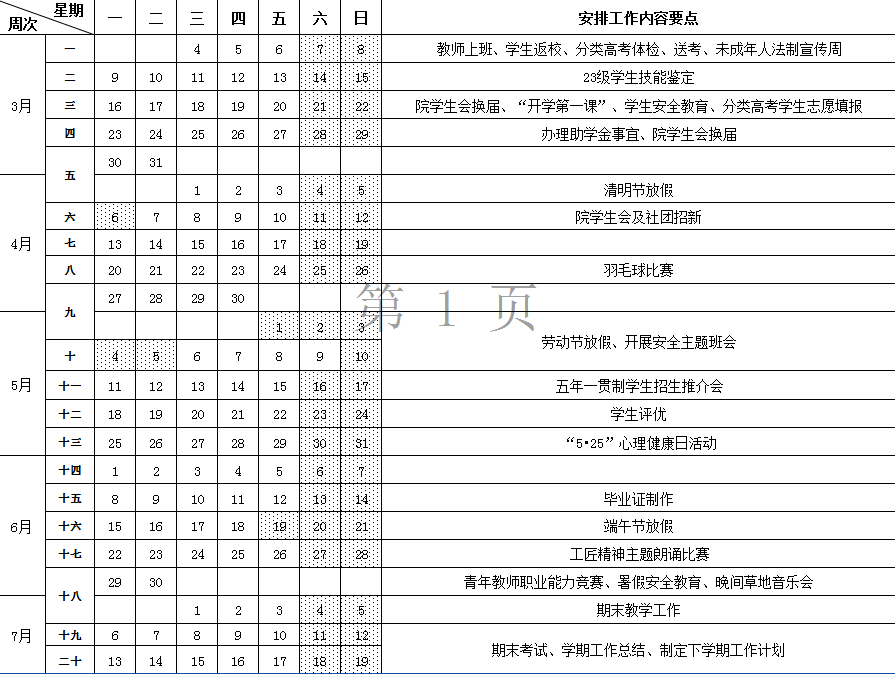 安徽安庆技师学院工作周历表(2025-2026学年第二学期)