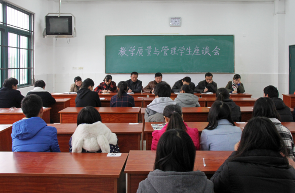 2016年11月25日下午,教学质量与管理座谈会在学院教学楼一楼103教室举行。教务处负责人、学生处负责人、各系部分管教学负责人和各班级学生代表参加了本次座谈会。